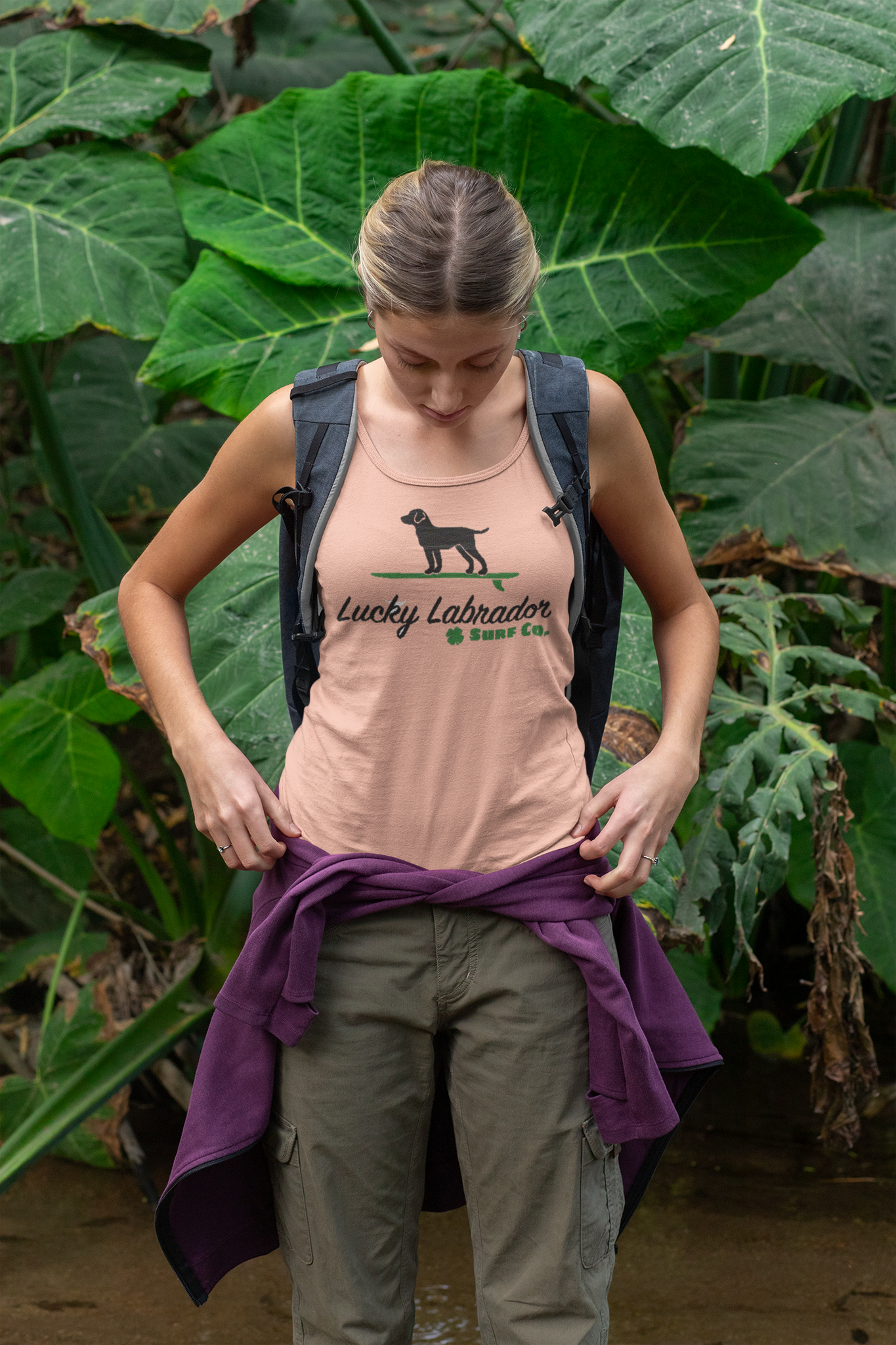 Embrace the surf lifestyle in style with this soft, breathable 100% cotton racer-back tank top. Featuring our iconic 'old school' Lucky Labrador logo front and center, this rose-colored essential brings vintage beach vibes to your everyday wardrobe. The racer-back design offers freedom of movement whether you're catching waves, hitting the boardwalk, or just soaking up the sun.